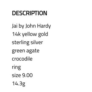 Sold Jai John Hardy 14k gold .925 green agate ALLIGATOR RING RARE