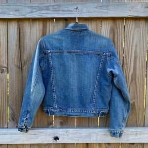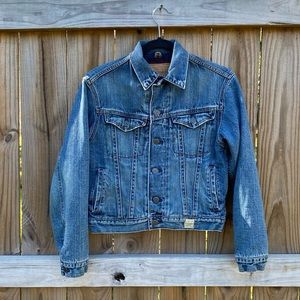 Abercrombie Workwear Lined Heavy Distressed Denim Crop Jacket
