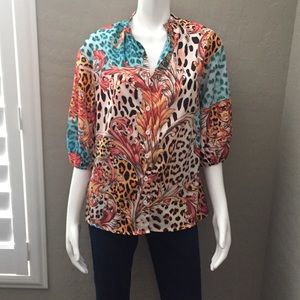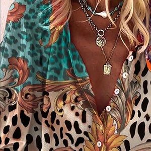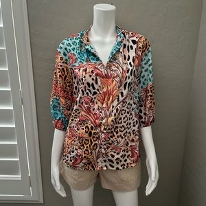 1 Left! Leopard Print Design Button Up Top w/3/4 S…