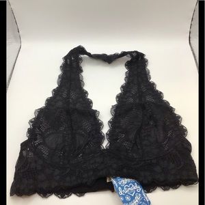 This is a Brand New Free People Black Galloon Halter Bra. It has a sheer lace design with a back hook closure. It is in Excellent Condition (See Photo’s).