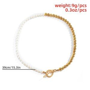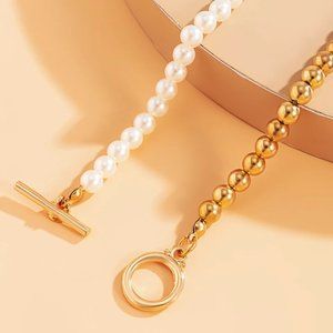 Baroque Pearl Chain Women Collar Punk Toggle Clasp Circle Lariat Necklace