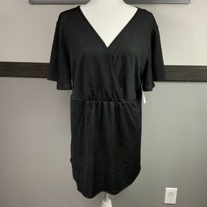 LOANNA woman’s blouse black short circular cap sleeve surplice neck plus size 2X
