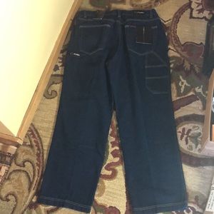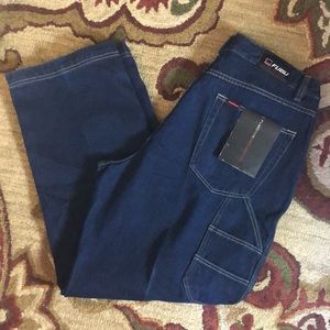 Amazing find! New deadstock with all tags (Vintage 90’s) Dark fresh denim by FUBU. My favorite thing is the internal stash pocket on left side (maybe all FUBU jeans have this-but it’s the first time I’ve noted it-super cool)