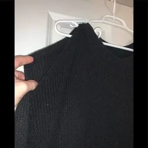 Color is BLACK! Cold shoulders tunic sweater. Very soft snd comfy.