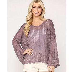 New! Sale 🔥 was $75.00. Plum lightweight Sheer Sweater with Scallop Sleeves