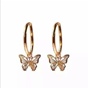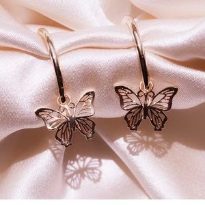 New Butterfly Drop Earrings 14k Rose Gold Plated