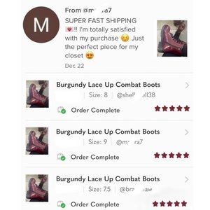 Burgundy Lace Up Combat Boots