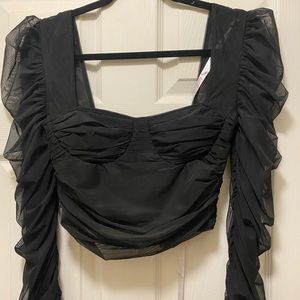 Black Mesh Ruched Front Milkmaid Top from MISGUIDED. Size 6. NEVER BEEN WORN !