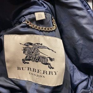 ❤️ Authentic Burberry Puffer Coat with Detachable Hood, Size 12 , Blue with Burberry Monogram inside, coat is in Excellent Condition, view pictures and video