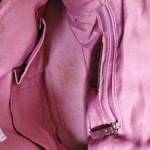 Coach Hamptons Black Pebbled Leather Dome Satchel Handbag F13963 Lining. Brown leather. Some stains on bottom and edge( shown in photos). Stains and marks consistent with use inside. Has been cleaned with Doc Martin. Good condition all closures work properly. Please zoom into photos for a clear visual description. Questions welcomed.