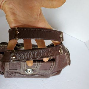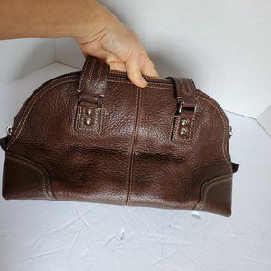 Coach Hamptons Pebbled Leather Dome Satchel Handbag F13963 Brown