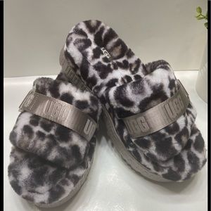 UGG Women’s Fluffita Panther Print Slipper Slides Stormy Grey Size 7,8,9,10