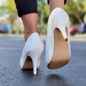 Women's White PAT Low Heel Pumps Shoes