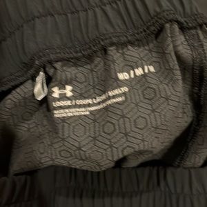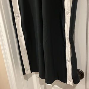 Like new Under Armor loose, button snap wide leg pants. Black with white stripes down the side. Fabric specially designed to aid recovery. Very comfy and cute! Just slightly too long for me so I am passing them on after 1-2 wears for someone else to love! Perfect condition!