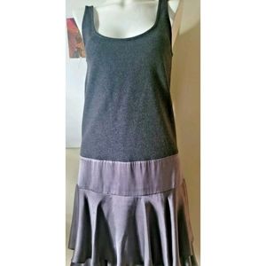 Sleeveless wool top & ruffed , two tiered silk skirt bottom. Scoop neck in a front and back.