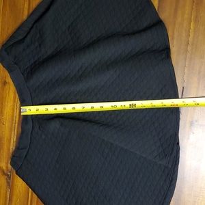 Olsenboye black mini skater Skirt, size L. used, good condition. Skirt is mini length and has a stretch waist. Approximate length and waist measurements shown in photos.