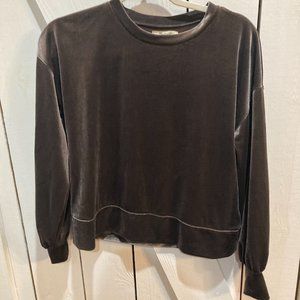 Madewell Velvet Balloon-Sleeve Sweatshirt taupe brown xs