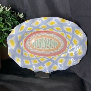 Wide and holds 5 cups liquid. Very good vintage condition. No chips or cracks noted. Aluminum is in very good condition. Thanks for looking! ๐