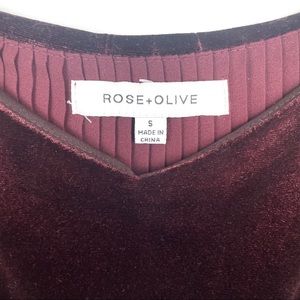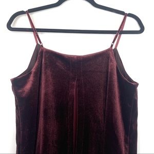 Rose + Olive Burgundy Velvet Camisole Size Medium. Spaghetti straps and pleated bottom. Preowned good condition.