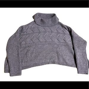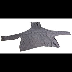 Eileen Fisher PL Grey Alpacha Crop Turtleneck Poncho Sweater - Used and in Great Condition