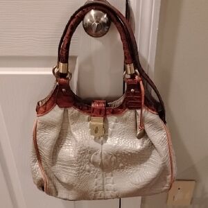 purse not in the best condition. leather dark underneath and the top is good little *Splits*****(cuts )in the Quilted material. inside fair condition.. I would say everyday purse.