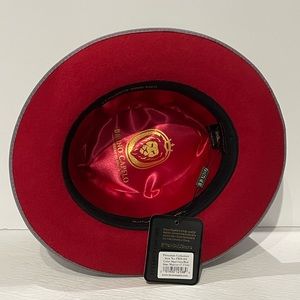 New with tags hat brim wool gray/red bottom wool satin lining very beautiful hat