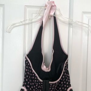 --Halterneck straps in black,pink satin ribbon tie up