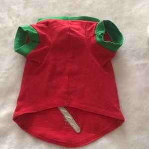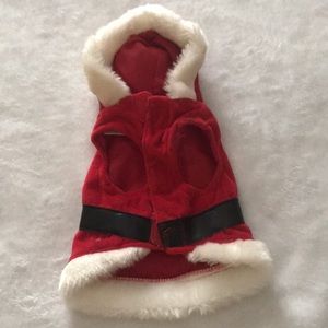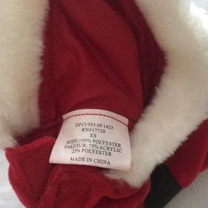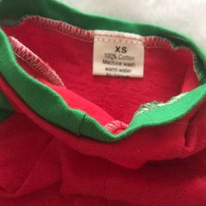 This is the perfect set. Santa suit and the Naughty shirt. The Santa suit has 3 Velcro closures and an opening in the suit so you can clip to the dog’s collar. The shirt is 100 per cent cotton and says “JUST GO AHEAD AND PUT ME ON THE NAUGHTY SHIRT “