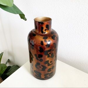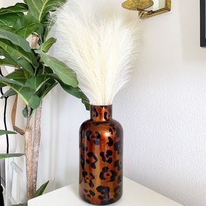 Leopard print glass vase. Beautifully painted double layers glass, smooth shiny glossy finish. Style on a sideboard or shelf. Add greenery or pompous grass for a light airy feel. Felt base. Preowned in excellent condition!