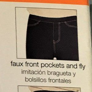 No nonsense Denim Leggings feature faux front pockets and fly. Real back pockets and back yoke. Fashionable and comfortable! The look of denim but the fit of a stretchy jegging. Made with cotton and spandex for a comfortable fit. The soft, non-binding waistband stays in place.