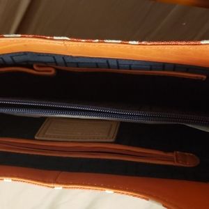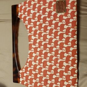 Tan, Burnt Orange, Elephant Print clutch purse.