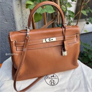 brown suede with leather trimming and gold toned hardware