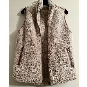 Soft and cozy light pink zip up sherpa vest with pockets.