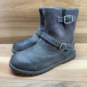 UGG Tularosa Black Suede Lace Up Sheepskin Tall Boots Women's Size 8 5190