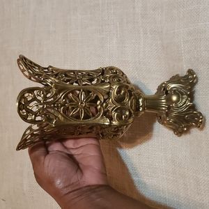 Vintage Brass Filigree Vase Candle Holder. Measurements Height 8.5" Base 4" Top 4.5"