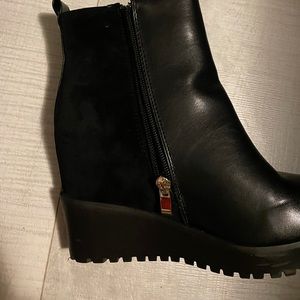 🇬🇧 black leather and suede platform ankle boots ✨