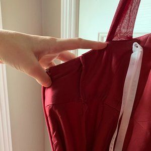 Azazie burgundy bridesmaid dress A8. Only worn once, like BRAND NEW. Such a beautiful dress. Has a slight alteration to the sides in the chest area, but can easily be fixed or altered again. No other alterations. Has built-in bra pads.