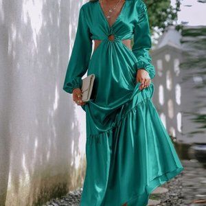 contemporary modern Cut Out Lantern Sleeve Satin Dress
