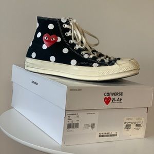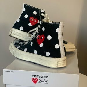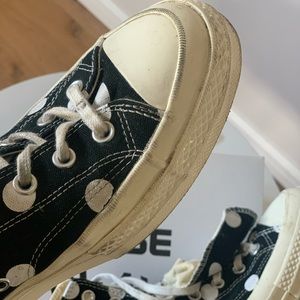 These are the CDG PLAY x Converse black with white polka dot size 10