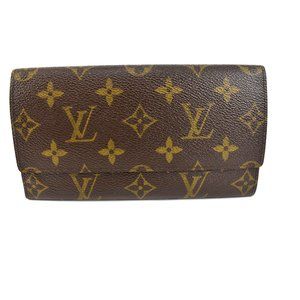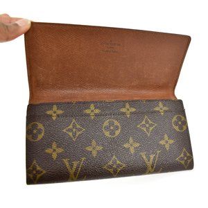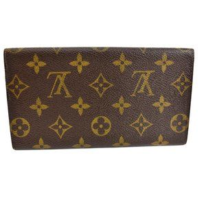 Brown, monogram "LV" logo long folding wallet with brown, leather interior
