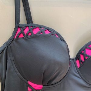 Torrid pink and black one piece lattice bathing suit swimsuit, women’s plus size 3, 3X. Very good condition. 10734326, 11134379