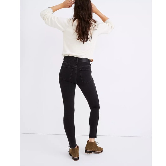 Lean + legs-for-days sexy, these 10" high-rise black jeans come in Madewell's famous stretchy holds-you-in denim w an authentic rugged look