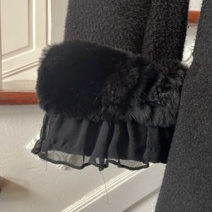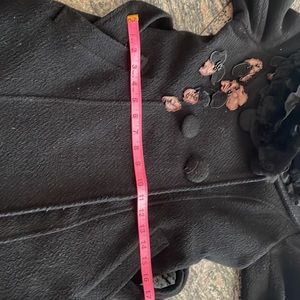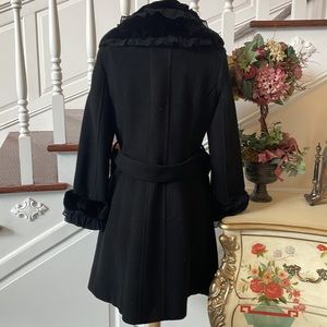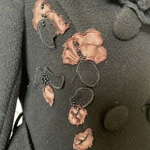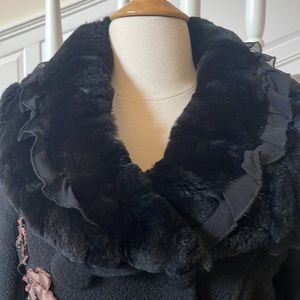 Beautiful and unique winter coat, lots detailed, laces in collar and cuff. Flower at chest right side. Style make you look smaller waist. One of kind! Hard to find!
