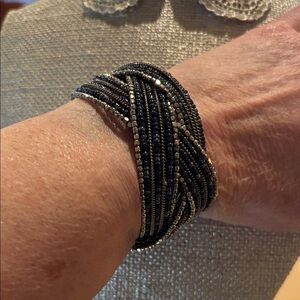 Handmaid bracelet set, fits sizes 7 1/2 - 8 " wrist, Lapis and Pearl, deep blue and white. No gap or pinch. OOAK.