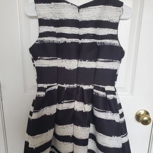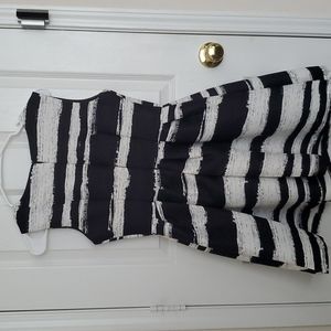 Black and White striped A-line dress in New condition. Black slip underneath do add fluff and demention to the dress.
