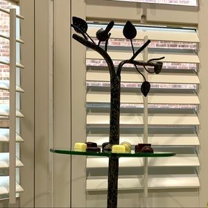 Like New double tiered glass cupcake quiche hors d'oeuvre stand +perching branch