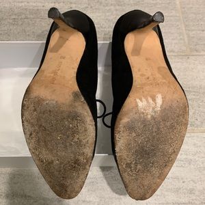 CONSIGNED. Manolo Blahnik Suede Heels with Mesh Overlay