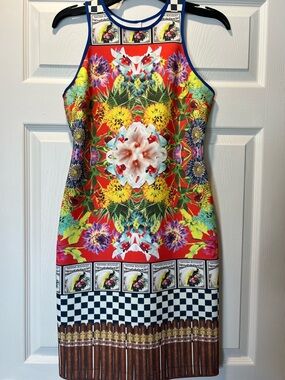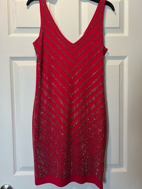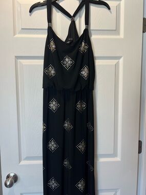 Amazing, wonderfully stylish tank by Abelline. Worn but in excellent condition. Stretchy knit-type feel with beautiful v-shaped strap placement. Accentuates the shoulders, perfect for a warm night out! About 16” across armpit to armpit, 15” across waist, 16” across at bottom, and 11” from armpit to bottom.