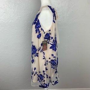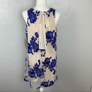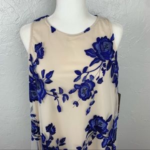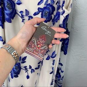 NWT Beige by Eci blue embroidered Floral A-line flowy tulle dress L