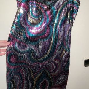 Intimately Free People Women's Chemise. Medium. Rainbow Multicolor. Printed. Adjustable Spaghetti straps. Round neck. Purple, Silver, Turquoise, Pink. 100% Polyester. Made in China.